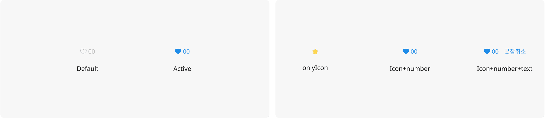 Reaction Button의 상태는 Default, Active 총 2가지 State로 구성됩니다.