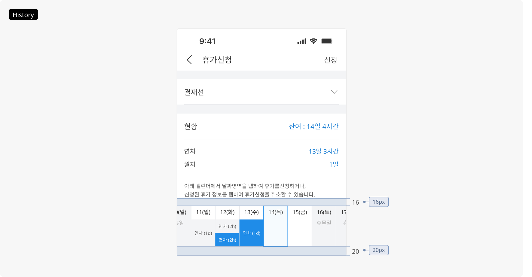 휴가 신청 내역 캘린더 (History)