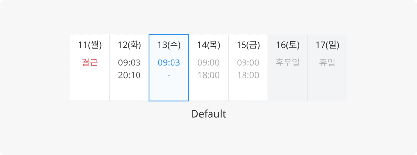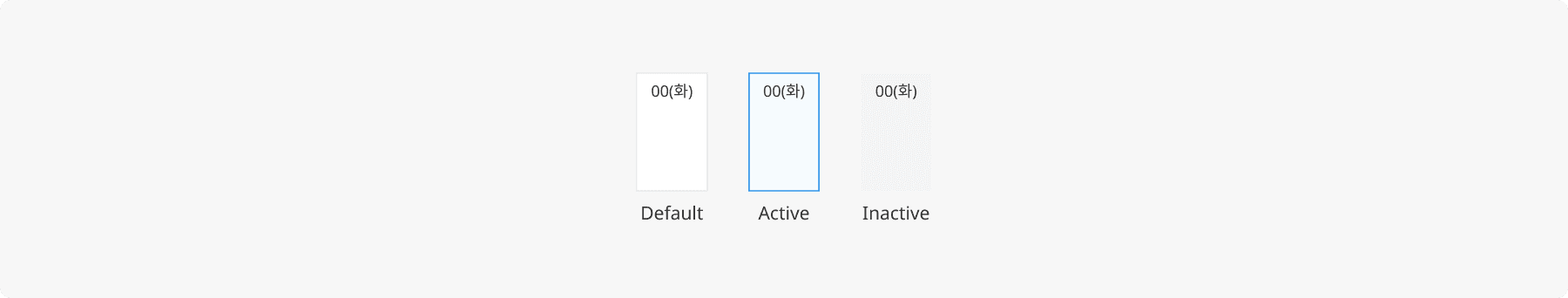 해당 날짜의 선택 여부, 상태에 따라 Default, Active, Inactive 상태로 구분됩니다.
