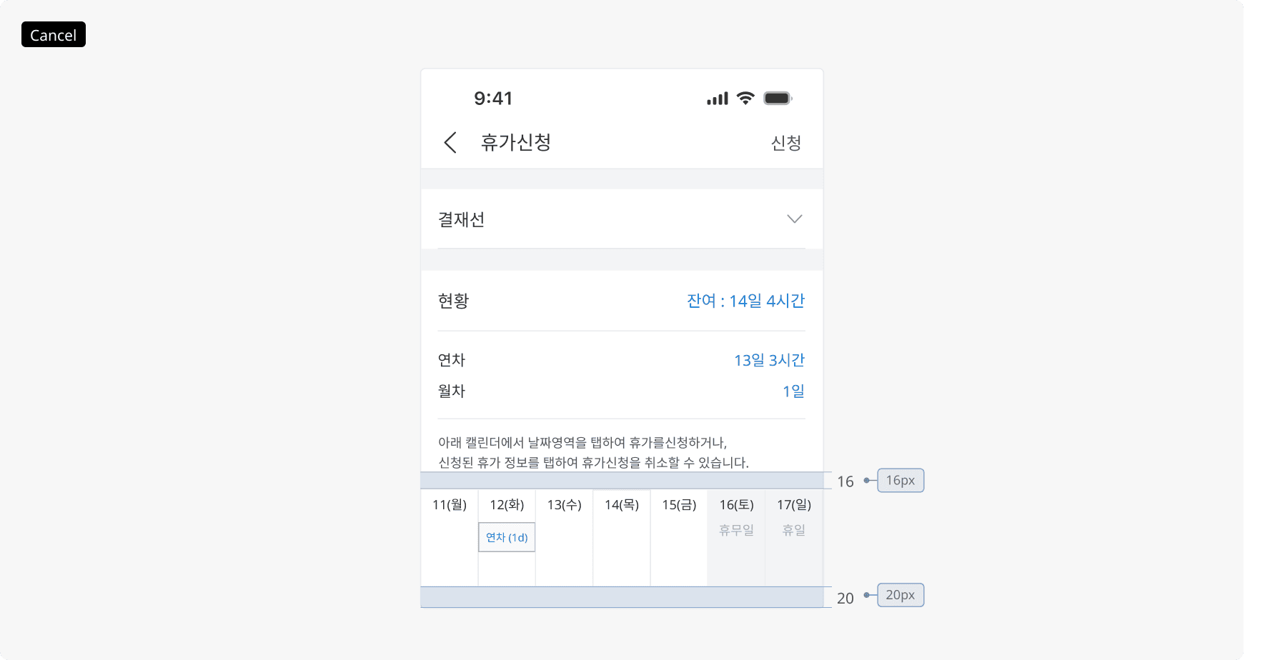 휴가 취소 (Canlendar Strip_Cancel)