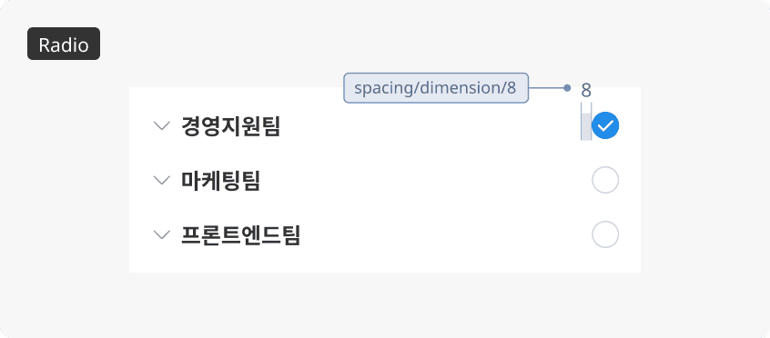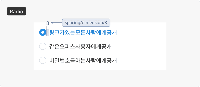 단일 선택을 할 때 사용되는 라디오 형식의 Select Control입니다.