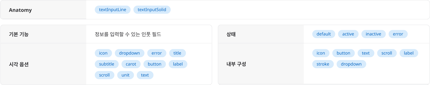 하단에 라인으로 구분된(line) 인풋과 전체 영역이 막힌(Solid) 인풋으로 분류됩니다.