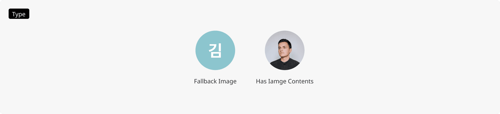 서버에서 이미지 콘텐츠를 불러올 수 없거나 사용자가 아직 프로필 사진을 등록하지 않은 경우, 이름 텍스트가 포함된 Fallback 이미지가 표시됩니다.