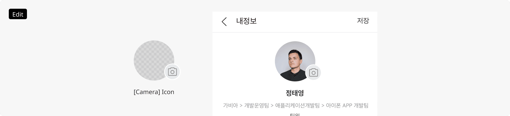 '내 정보' 같은 프로필 수정 화면에서 XL(92px) 아바타에 적용합니다. 우측