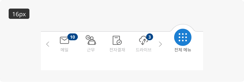 숫자 뱃지는 메뉴 아이콘과 함께 완전히 겹쳐져서 사용합니다.