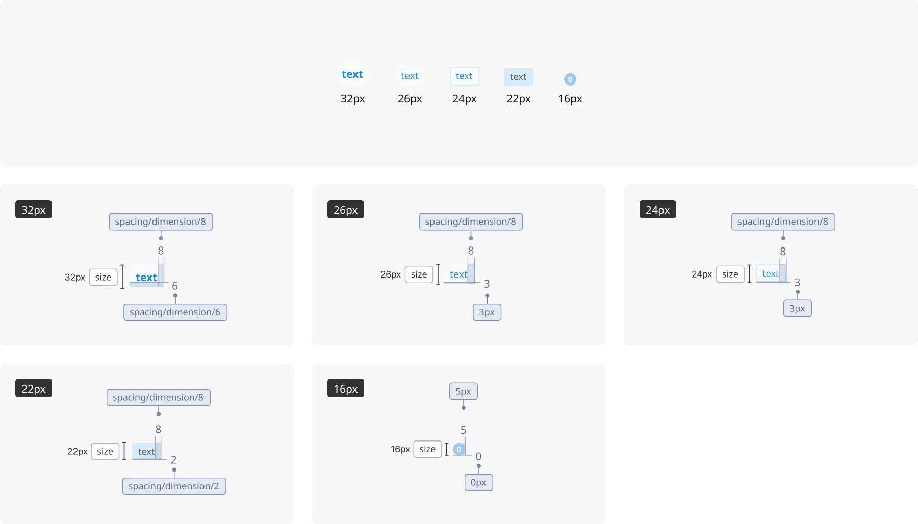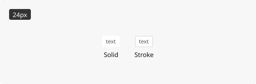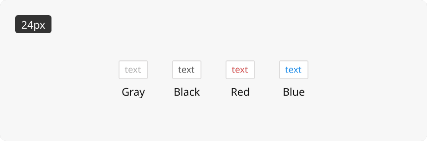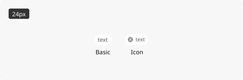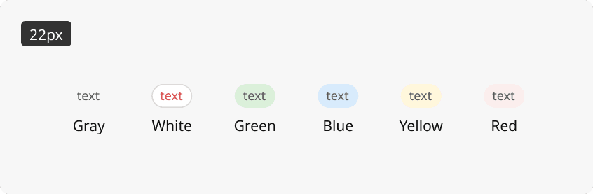 라벨이 시용되는 목적에 따라서 크기를 구분하여 사용할 수 있습니다. 크기별로 32px, 26px, 24px, 22px, 16px로 제공합니다.