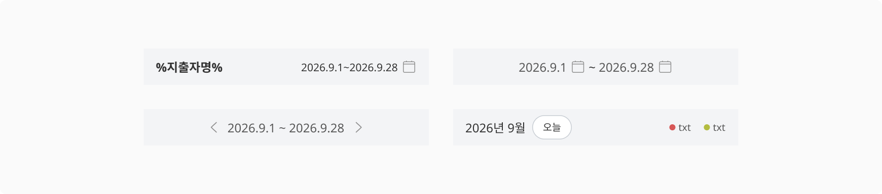 캘린더, 날짜별 조회 등 날짜 표시가 필요한 부분에 헤더 바로 하단에 붙어서 사용됩니다.
