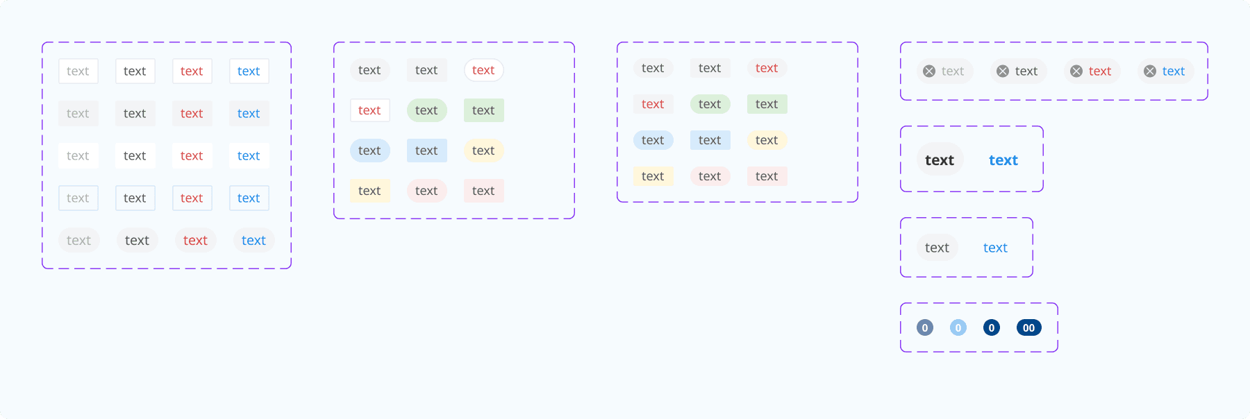라벨이 반복될 때, 가로로 4px, 세로는 6px의 간격을 두고 사용합니다.