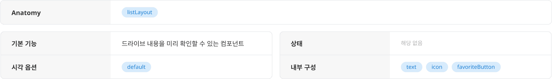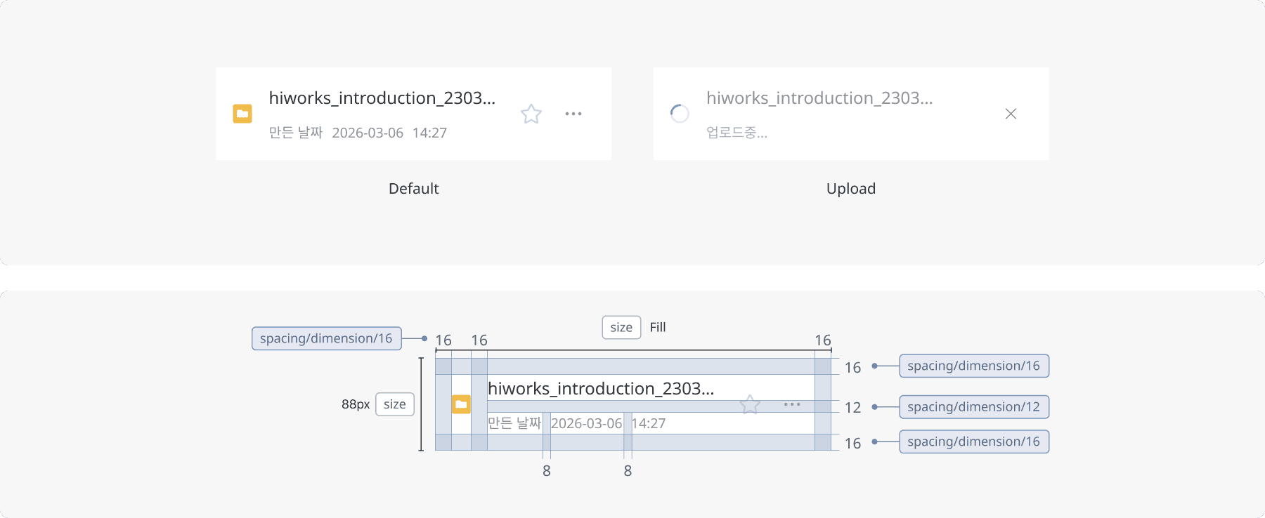 드라이브 리스트의 너비는 Fill로 채워져서 사용되고, 높이는 내부 콘텐츠에 88px 사이즈로로 사용됩니다.