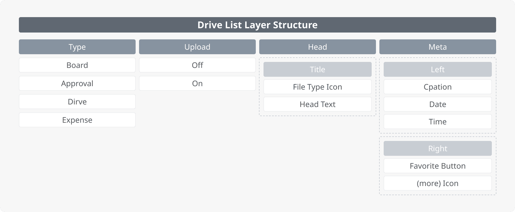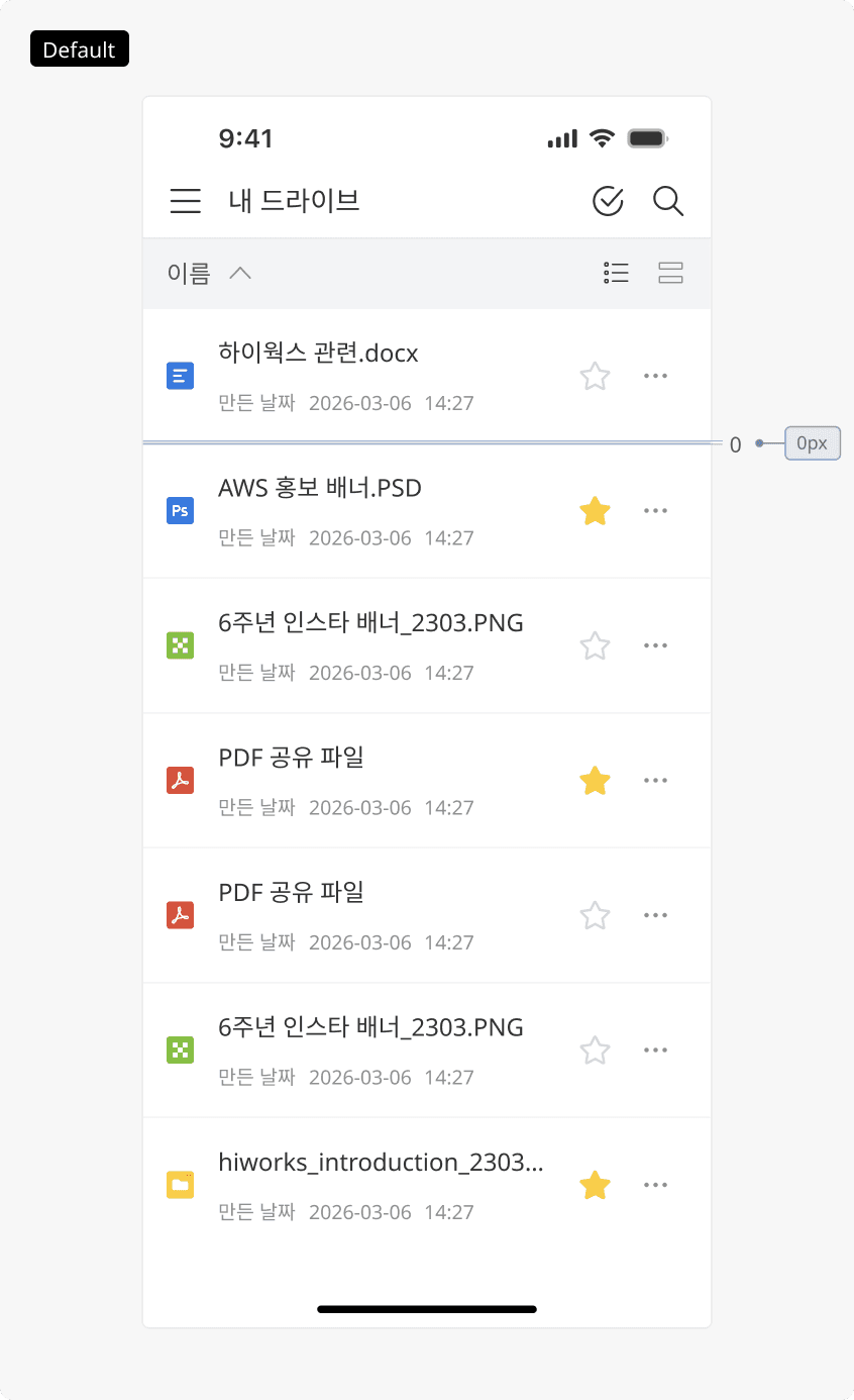 하이웍스 앱에서 드라이브 페이지의 리스트형 컴포넌트입니다.