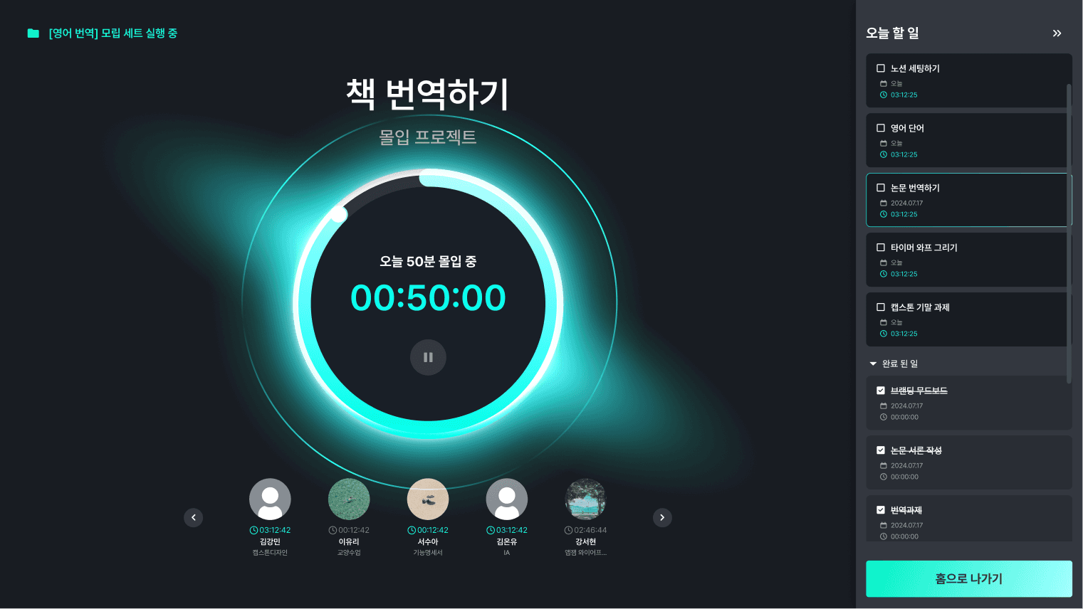 타이머를 시작해 작업에 집중할 수 있습니다.
