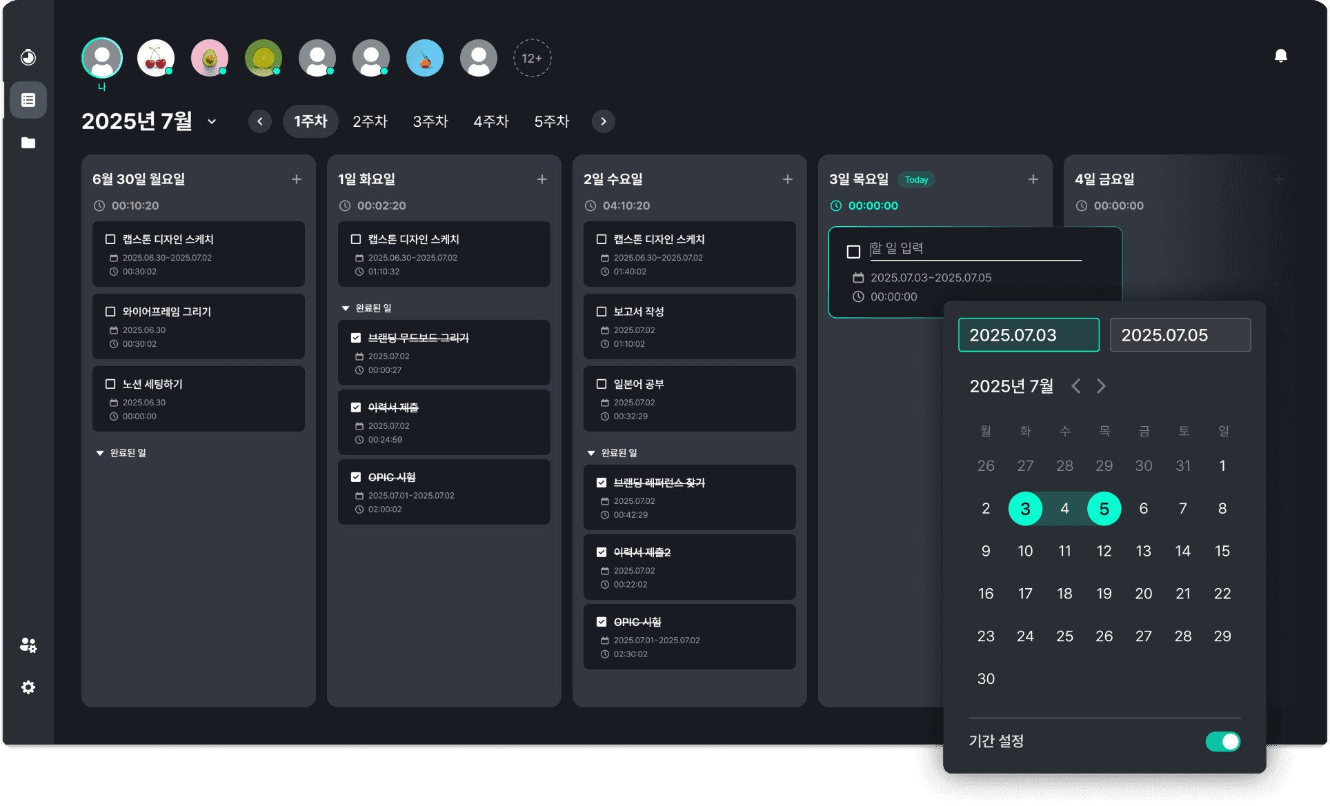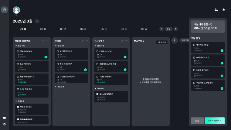 타이머에서 나와서, 날짜별로 할 일을 정리하고, 집중 시간을 확인할 수 있습니다.