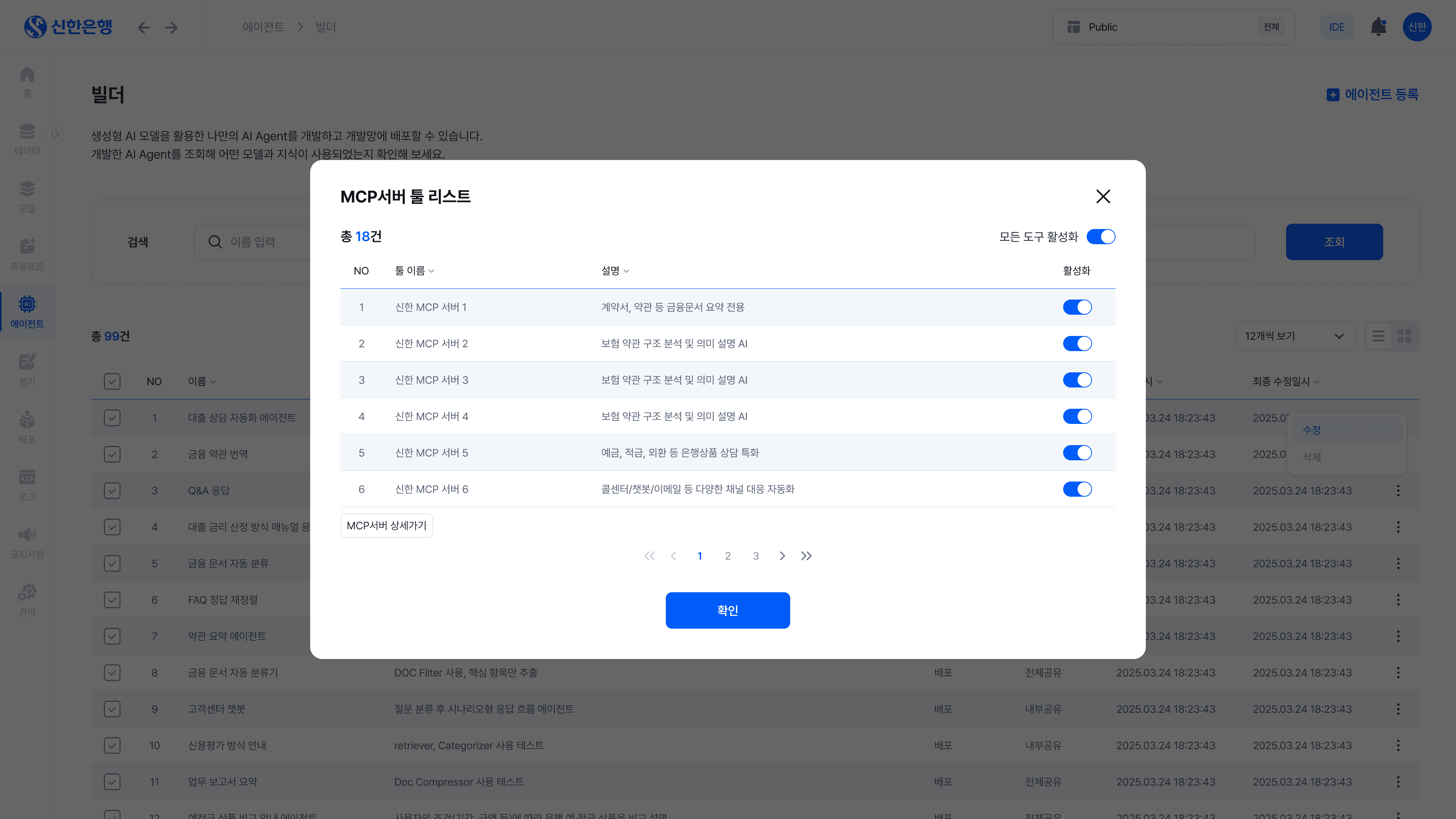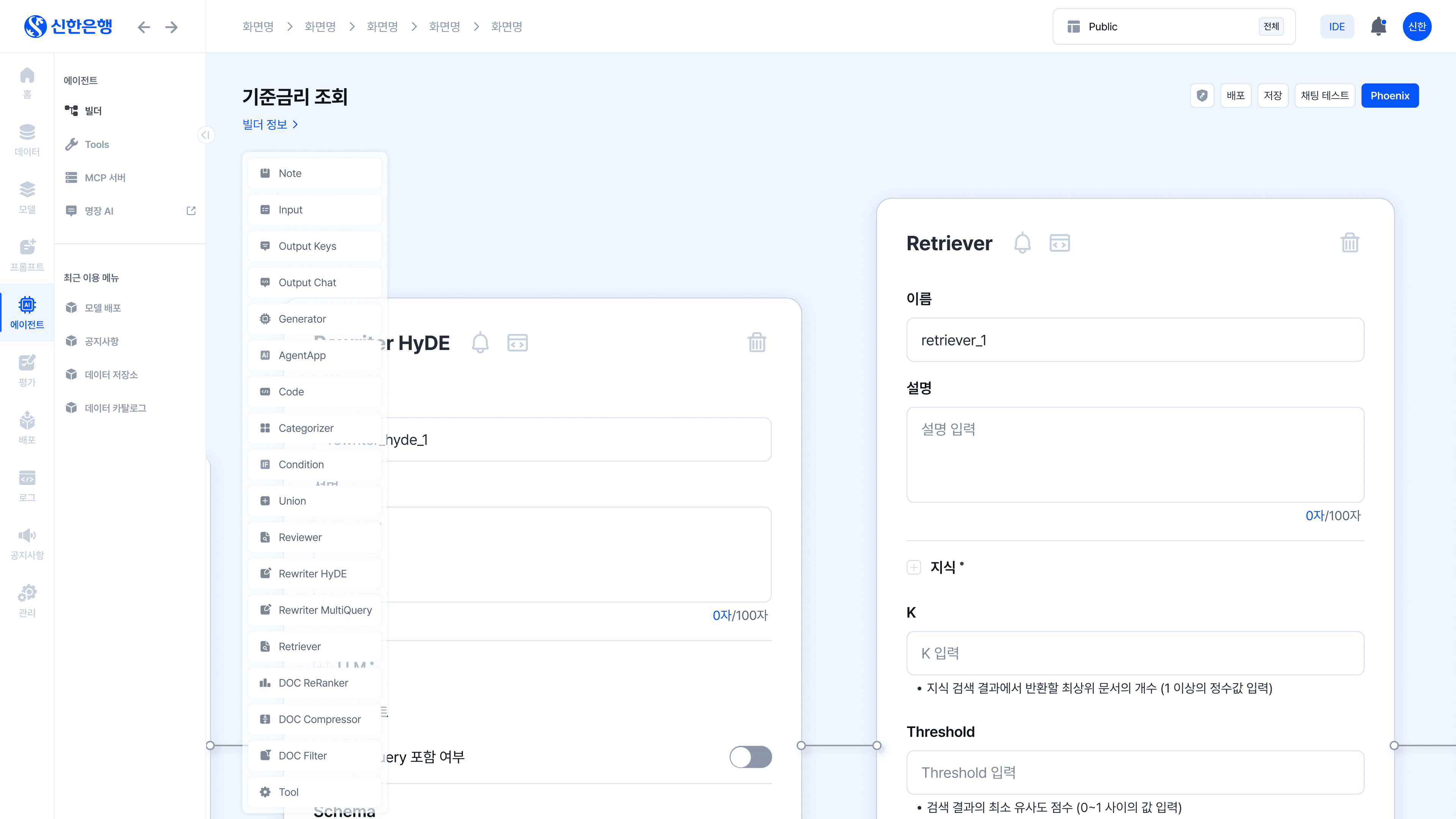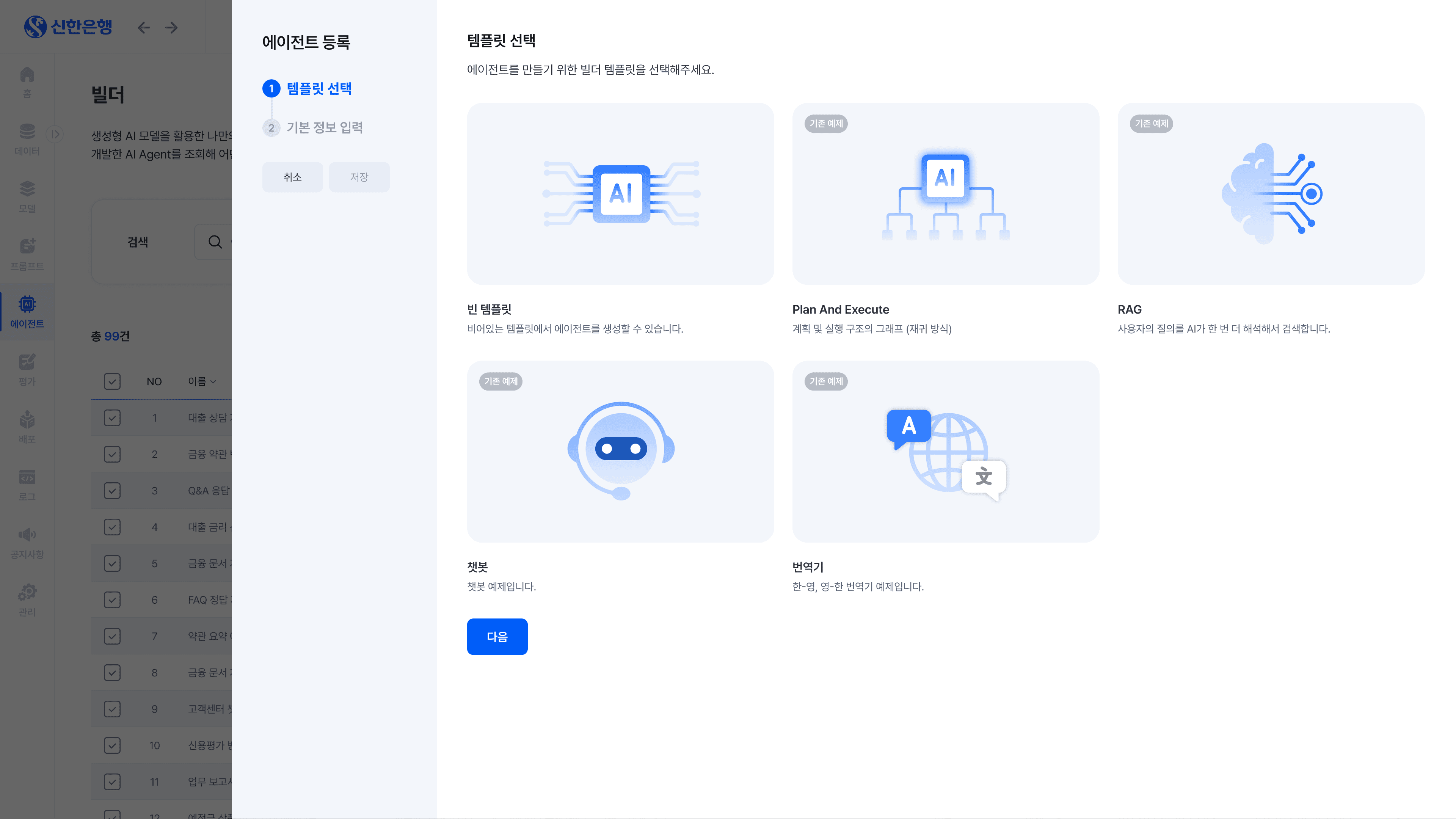 비개발직군의 은행원도 쉽게 에이전트를 만들 수 있는 UX로 개선했습니다.