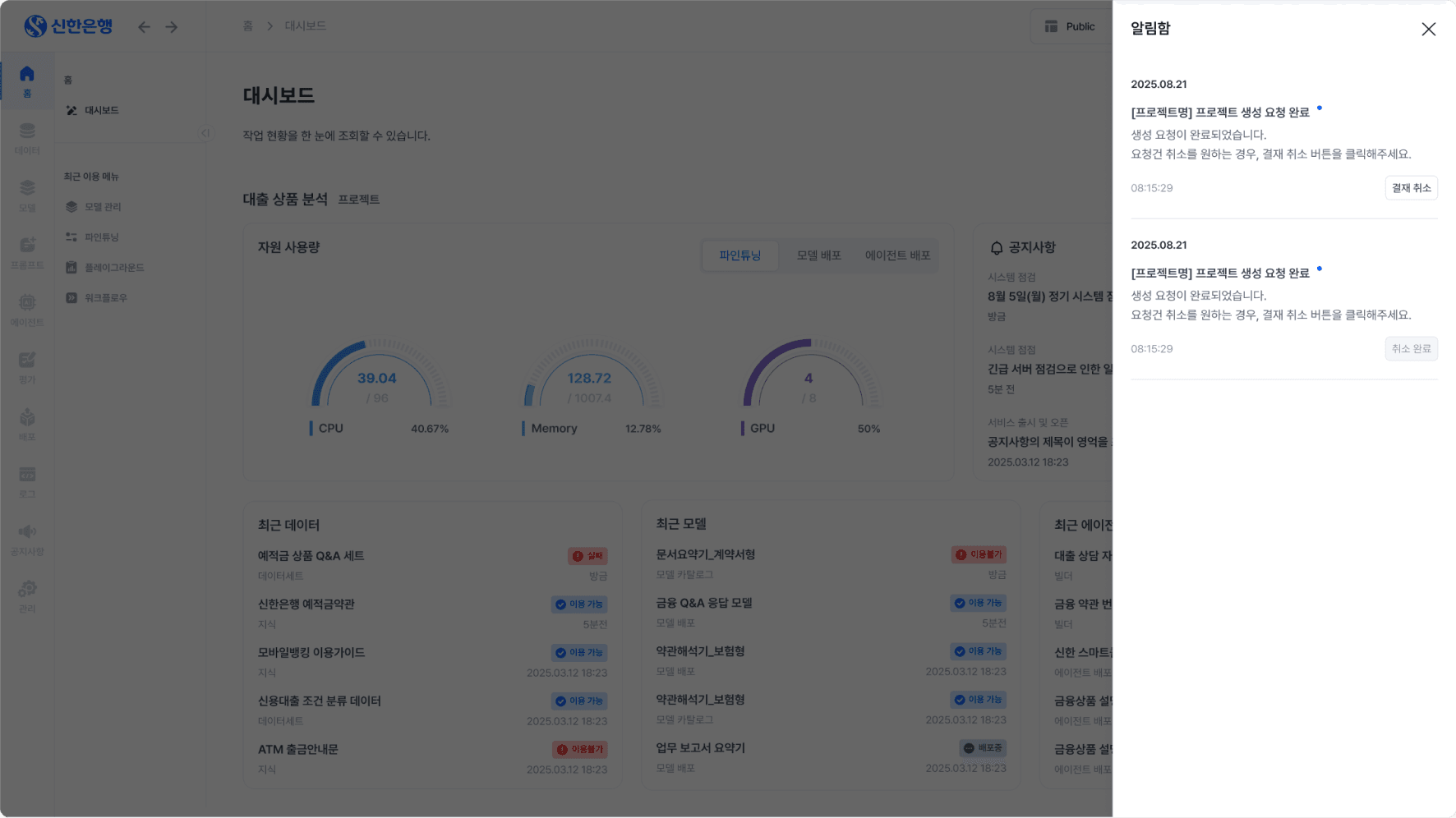 신한은행의 사내 AI Agent 플랫폼의 UI/ UX를 디자인했습니다.