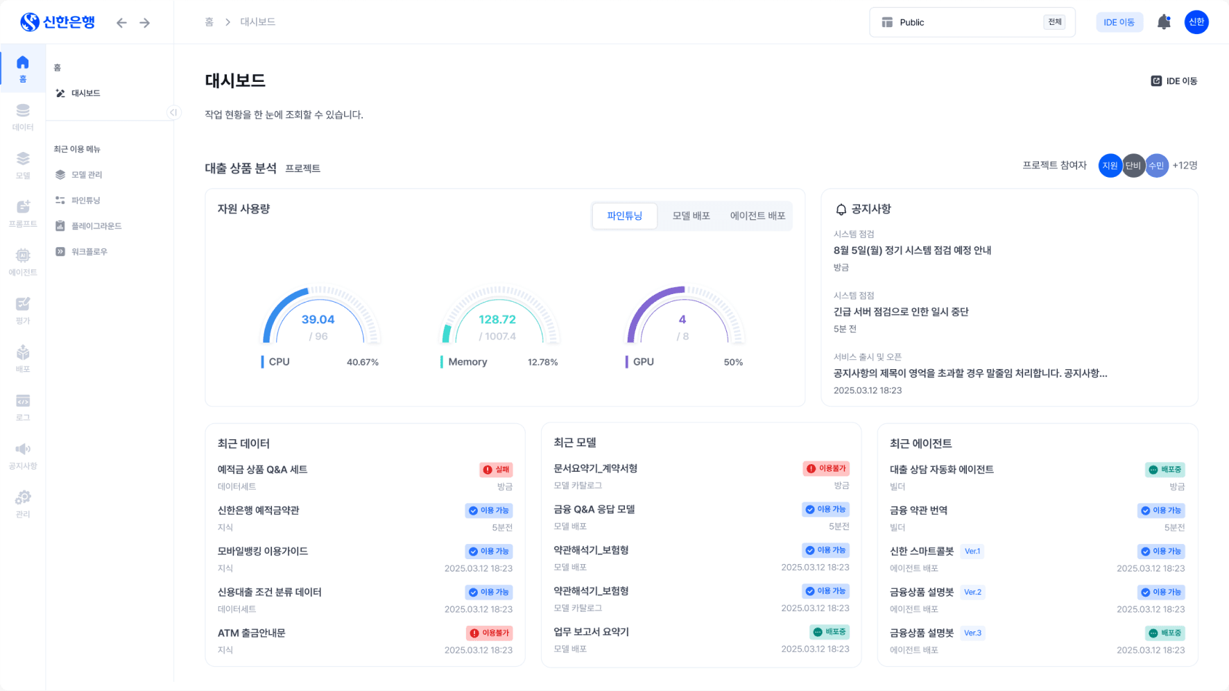 신한은행, AI Agent 플랫폼 UI/ UX 디자인