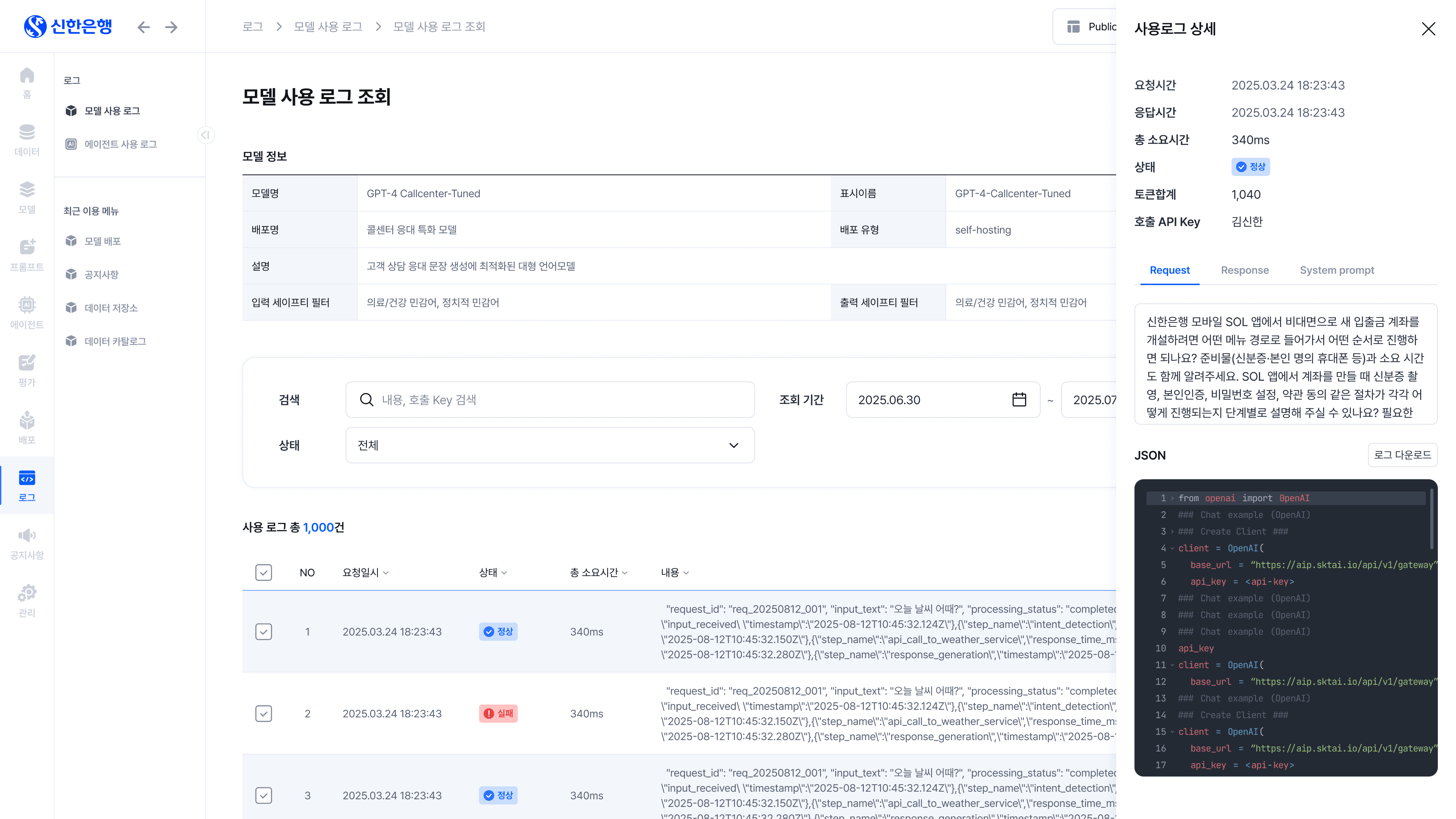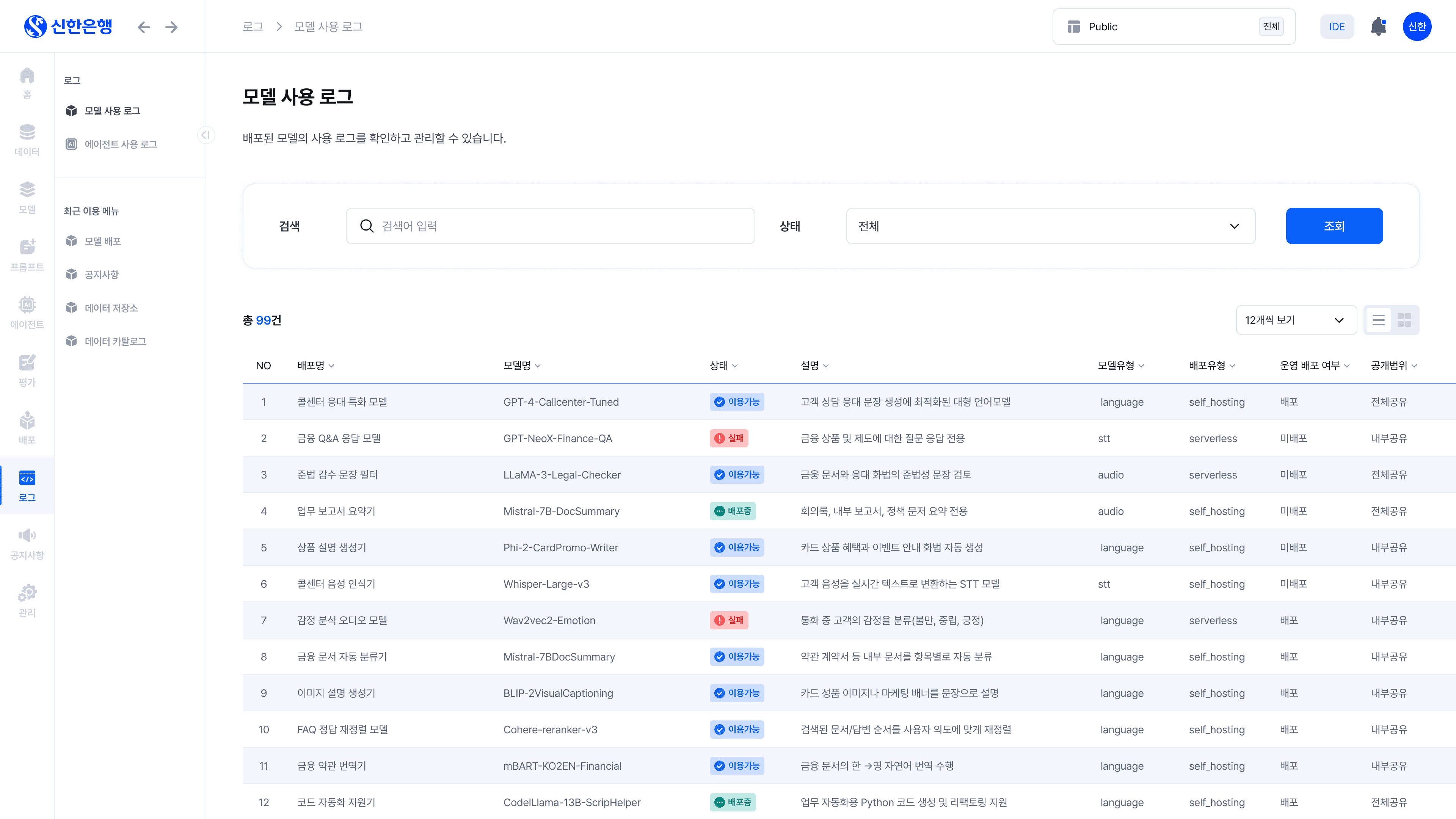 05 지정된 모델의 배포 성공 여부와 사용 로그를 확인해주세요.