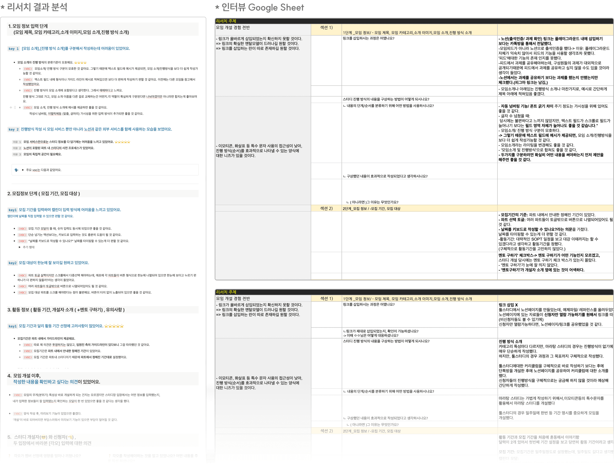 구체적인 VOC는 Google Sheet에 작성하고, 팀원들과 함께 결과를 분석했습니다.