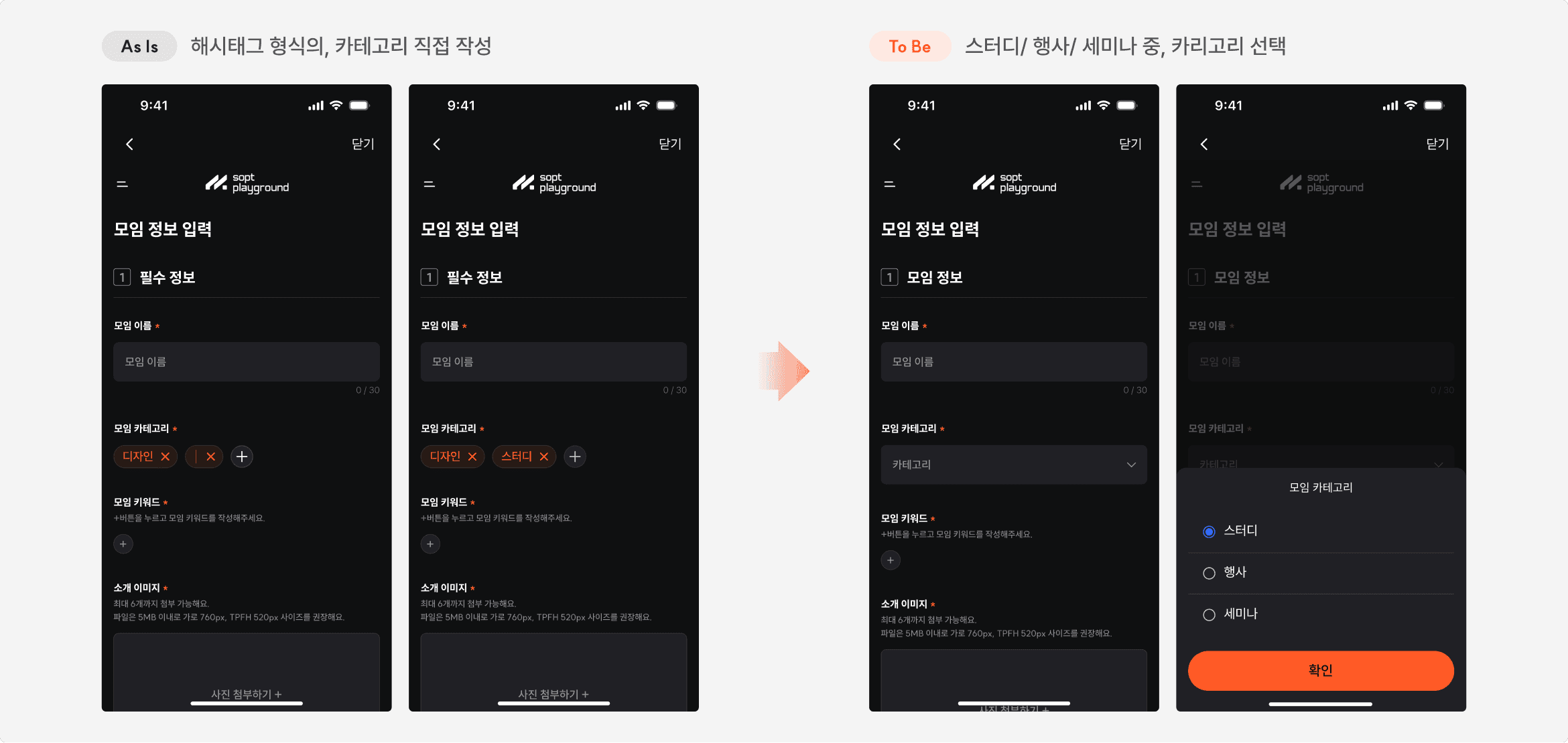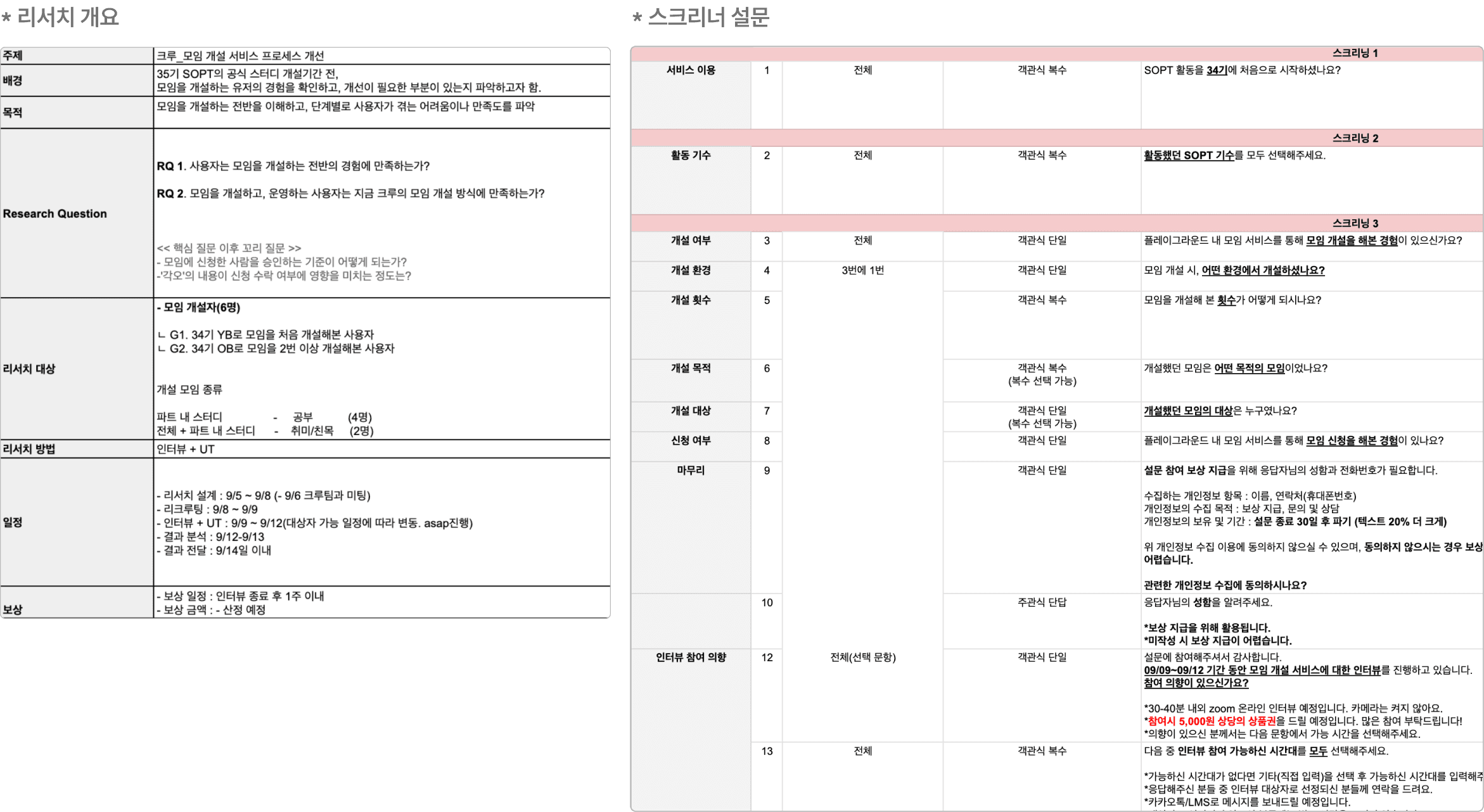 부원 인터뷰와 UT를 기반으로 모임 개설 플로우의 문제점을 분석하고
