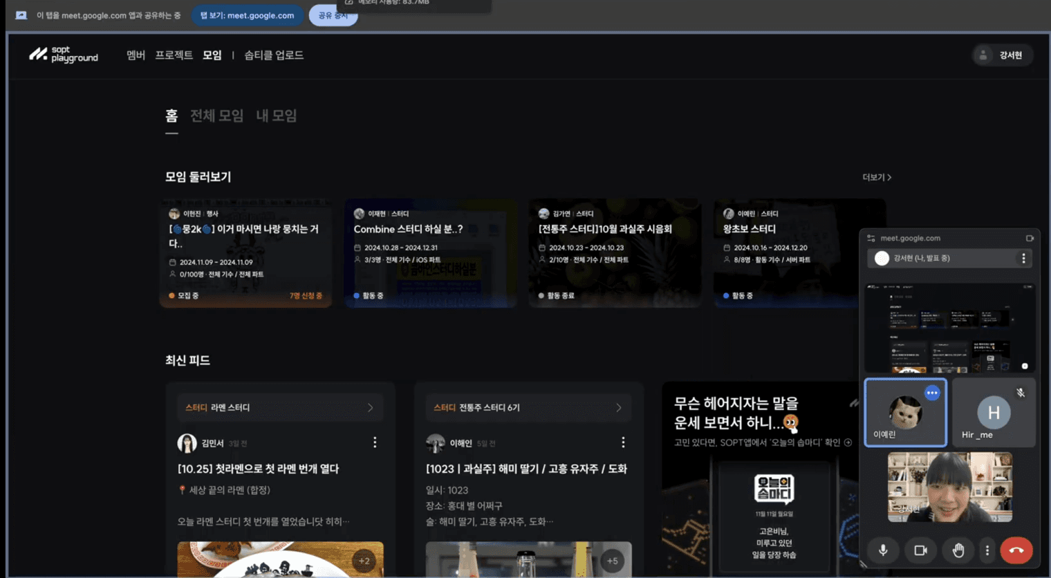 부원들이 직접 모임을 만들고 함께 학습할 수 있는 기능을 제공하고 있습니다.