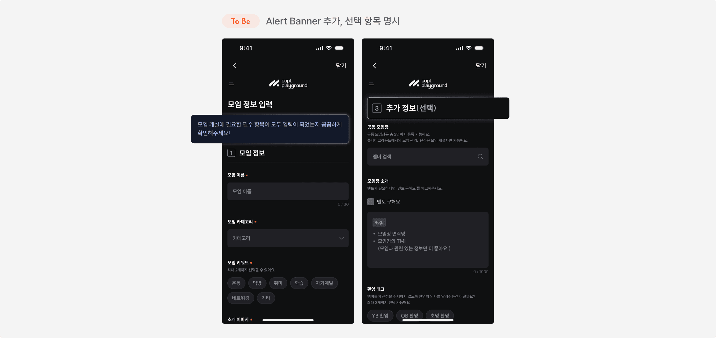 선택 항목은 타이틀 옆에 명시하여 필수 항목과 구분될 수 있도록 했습니다.